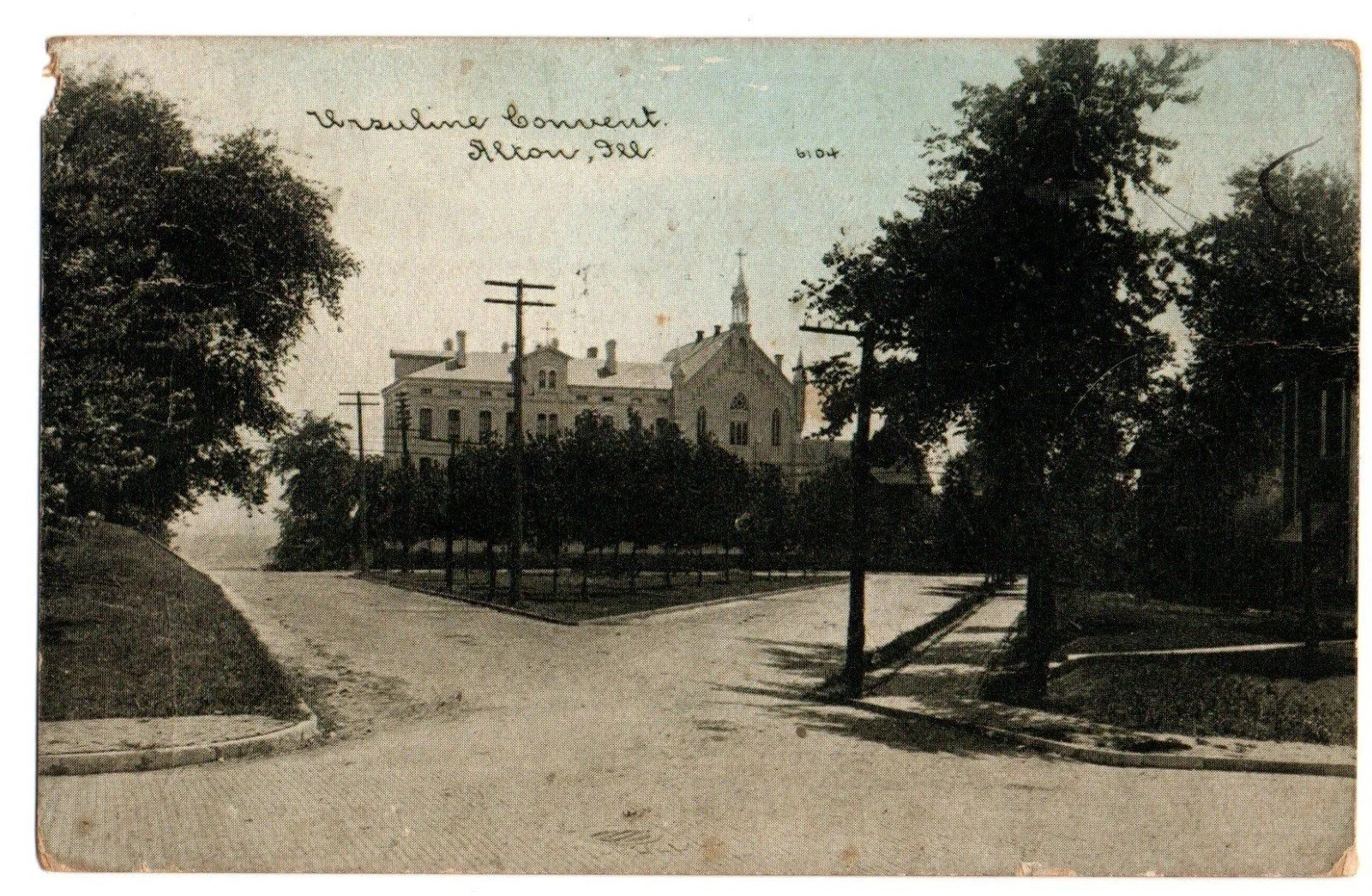 Built in the early 1930s on the site of the 1856 Illinois State Fair, the large brick buildings marked the second location of the Ursuline Sisters Convent in Alton. The order first came to the St. Louis region from Bavaria in 1859 and was sent to Alton at the request of Bishop Daniel Juncker to teach in Catholic schools. Their original convent was built on Fourth Street, where they founded the Ursuline Academy for girls. In 1927, it opened to boys and became Marquette High School. The original convent became part of the school.